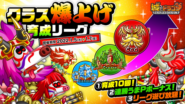 株式会社アソビズム(本社:東京都千代田区、代表取締役:大手智之)は、App Store・Google Playにて好評配信中の『城とドラゴン』で、2022年1月5日(水)より「クラス爆上げ育成リーグ」を開催いたします。