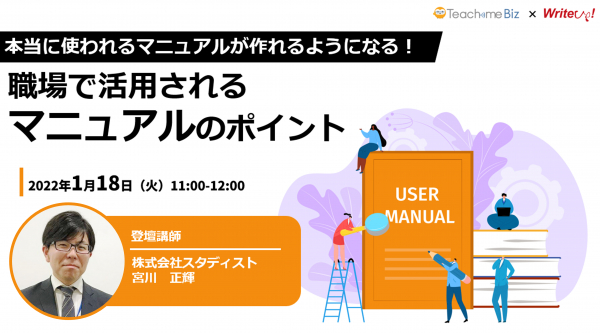 株式会社ライトアップ(本社:東京都渋谷区、代表取締役社長:白石崇、以下ライトアップ)と、株式会社スタディスト(本社:東京都千代田区、代表取締役CEO:鈴木悟史 、以下スタディスト)は、職場で活用される社内マニュアルを作成するためのポイントを解説するオンラインセミナーを共同で開催いたします。