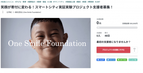 https://readyfor.jp/projects/onesmilefoundation