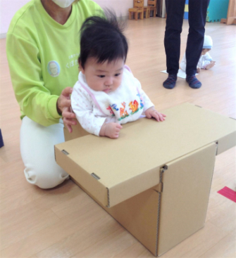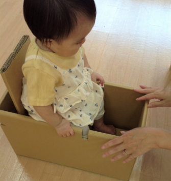 従来の木製の「のうけんいす」は特別製で高価格でしたが、強化段ボールを使用することにより、安全性と使用感を保ちながら、お求めやすい価格でのご提供が可能となり、よりお手軽に「育脳」を取り入れていただけます。詳しい使い方説明書付きですので、「くぼたのうけん」にお通いの方以外もお子様とご自宅で過ごす際に活用していただけるほか、出産祝いなどにも最適です。
