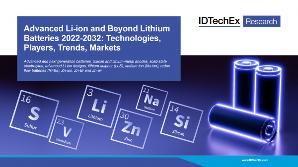 IDTechEx(先進技術調査会社: 本社英国 ケンブリッジ)は「先進的リチウムイオンおよび次世代バッテリー2022-2032年」と題した調査レポートを発行し、2022年1月7日より、日本法人のアイディーテックエックス株式会社(東京都千代田区)での販売を開始しました。