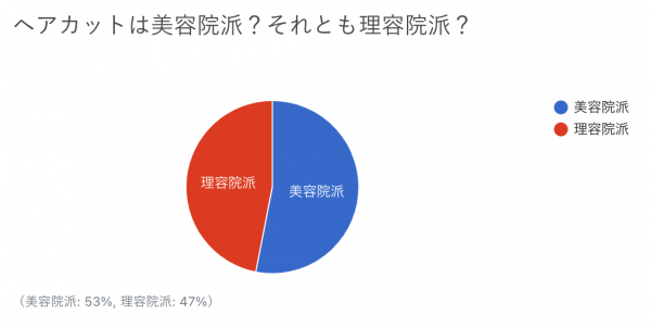 アンケート結果をまとめると、美容院派は53%、理容院は47%と、美容院派がやや多い結果となりました。
