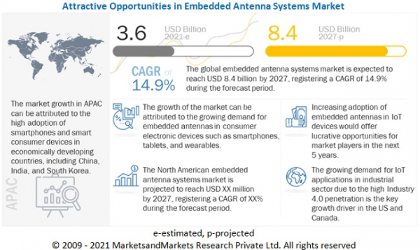 MarketsandMarkets「Embedded Antenna Systems Market with COVID-19 Impact Analysis, by Antenna Type (Chip, Patch, PCB Trace and FPC), Connectivity (Wi-Fi/Bluetooth, GNSS/GPS, Cellular, LPWAN, and UWB), End User, and Geography - Global Forecast to 2027 - 組み込みアンテナシステム市場:アンテナタイプ(チップ、パッチ、PCBトレース、FPC)、コネクティビティ(Wi-Fi/Bluetooth、GNSS/GPS、セルラー、LPWAN、UWB)、エンドユーザ、地域別の2027年までの世界予測」は世界の組み込みアンテナシステム市場を調査し、アンテナタイプ、接続技術別、地域別などの市場分析・予測結果を提供しています。
