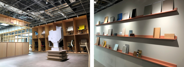 オフィスのイメージをカタチにしていくための実験スペースです。什器や空間素材サンプルを持ち込んだり、VR体験をしたりしながら、理想のオフィスにイメージを近づけていきます。