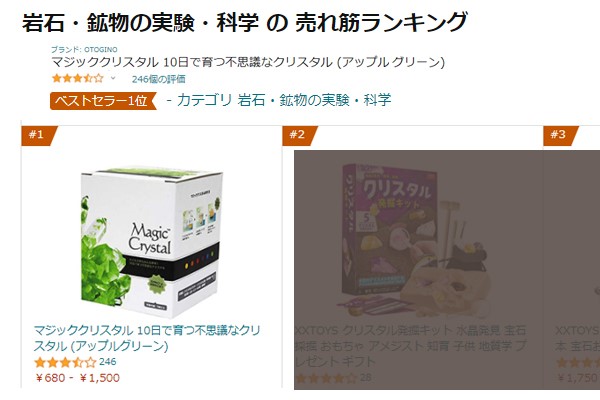 Amazon売れ筋ランキング「岩石・鉱物の実験・科学」で1位ランキング