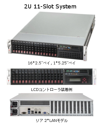(11-スロット/11-バス, DP Xeon E5-2600 v4, 16*2.5” + 1*5.25"ベイ, 2*GbE)