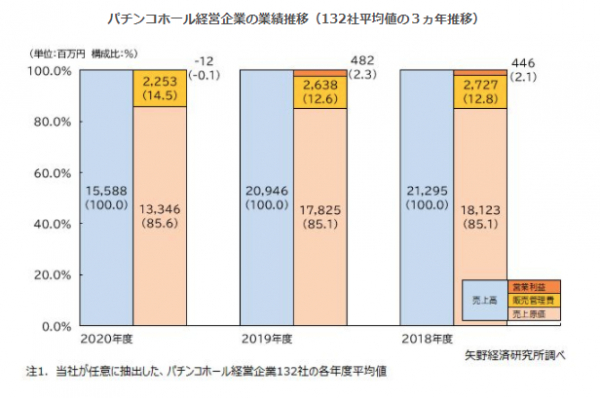 株式会社矢野経済研究所(代表取締役社長:水越孝)は、パチンコホール経営企業132社の決算情報から主要指標の平均値を算出し、売上・利益動向を明らかにいたしました。