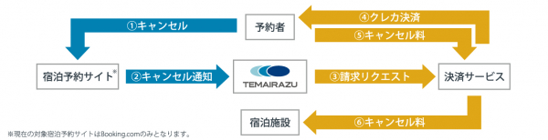 決済リクエストを自動で送る設定をすると、Booking.comに事前に設定したキャンセルポリシーの対象となる予約のキャンセルが発生した場合には、Booking.comからTEMAIRAZUへ送られるキャンセル通知をきっかけとして、予約時に登録されたクレジットカードに対して決済が行われるため、宿泊施設側での手動操作は不要です。