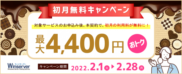 Winserver(ウィンサーバー/運営会社:アシストアップ株式会社)は、2022年2月1日(火)~2月28日(月)の期間、初月無料キャンペーンを実施いたします。