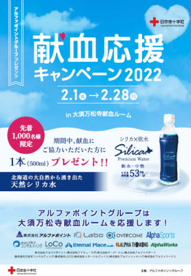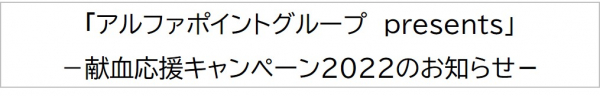 株式会社アルファポイント(代表取締役 丸山和之)は2022年2月1日(火)~28日(月)の1か月間「アルファポイントグループ presents」-献血応援キャンペーン2022を実施します。