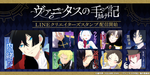 TVアニメ「ヴァニタスの手記」のLINEクリエイターズスタンプがインクルーズより新登場!使いやすい日常系スタンプから、作中の印象的なセリフを使用したスタンプまで盛りだくさんです。是非、LINEクリエイターズスタンプでもTVアニメ「ヴァニタスの手記」の世界観をお楽しみください。