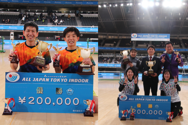 ソフトテニスの日本トッププレーヤーが頂点を競う「ルーセントカップ 第62回東京インドア 全日本ソフトテニス大会」 (東京インドア2022)が1月16日、東京体育館(東京都渋谷区)で開催されました。男女8ペアが争い、男子は村上雄人・長江光一(NTT西日本)ペアが初優勝。女子は高橋乃綾・半谷美咲(どんぐり北広島)ペアが連覇しました。