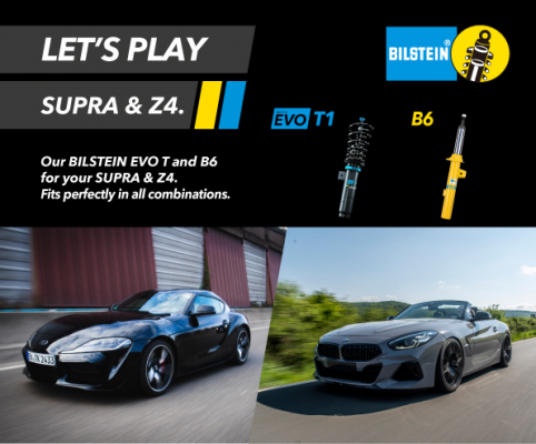 サスペンションブランドBILSTEINよりTOYOTA SUPRA / BMW Z4用 EVO T1(車高・減衰力調整式サスペンションキット) ・ B6(純正形状スポーツダンパー)を3月より発売いたします。