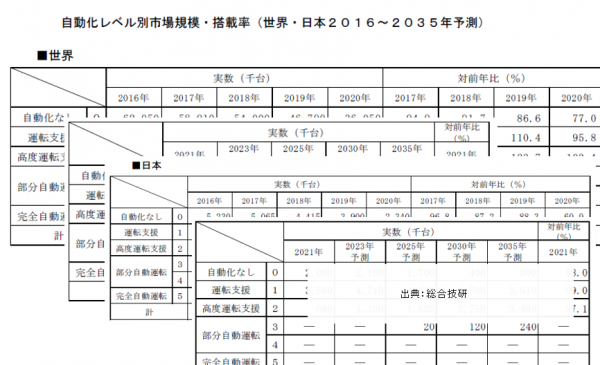 総合技研「2022年版 自動車部品のロードマップ」は自動車の特に重要なシステムおよび部品についてロードマップを提供しています。第一章では「走る」「曲がる」「止まる」ロードマップ全体像、環境規制強化への対応策、排ガス規制・燃費規制強化の動向などの市場概要および市場環境、第二章では日本および世界のパワートレイン市場動向や市場予測、、第三章ではブレーキ、ステアリング、アクセルの市場動向や市場予測、第四章では先進安全・自動運転、そしてカーエアコンやエアバッグなどのボディ系システムについてまとめています。