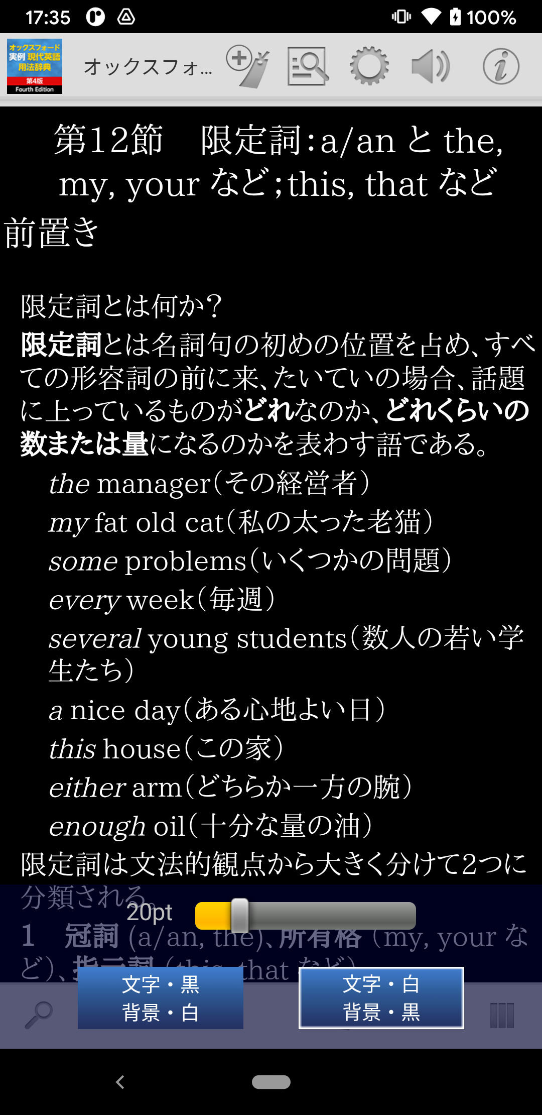 ・辞典項目のテキストは、文字サイズを細かく設定可能です。