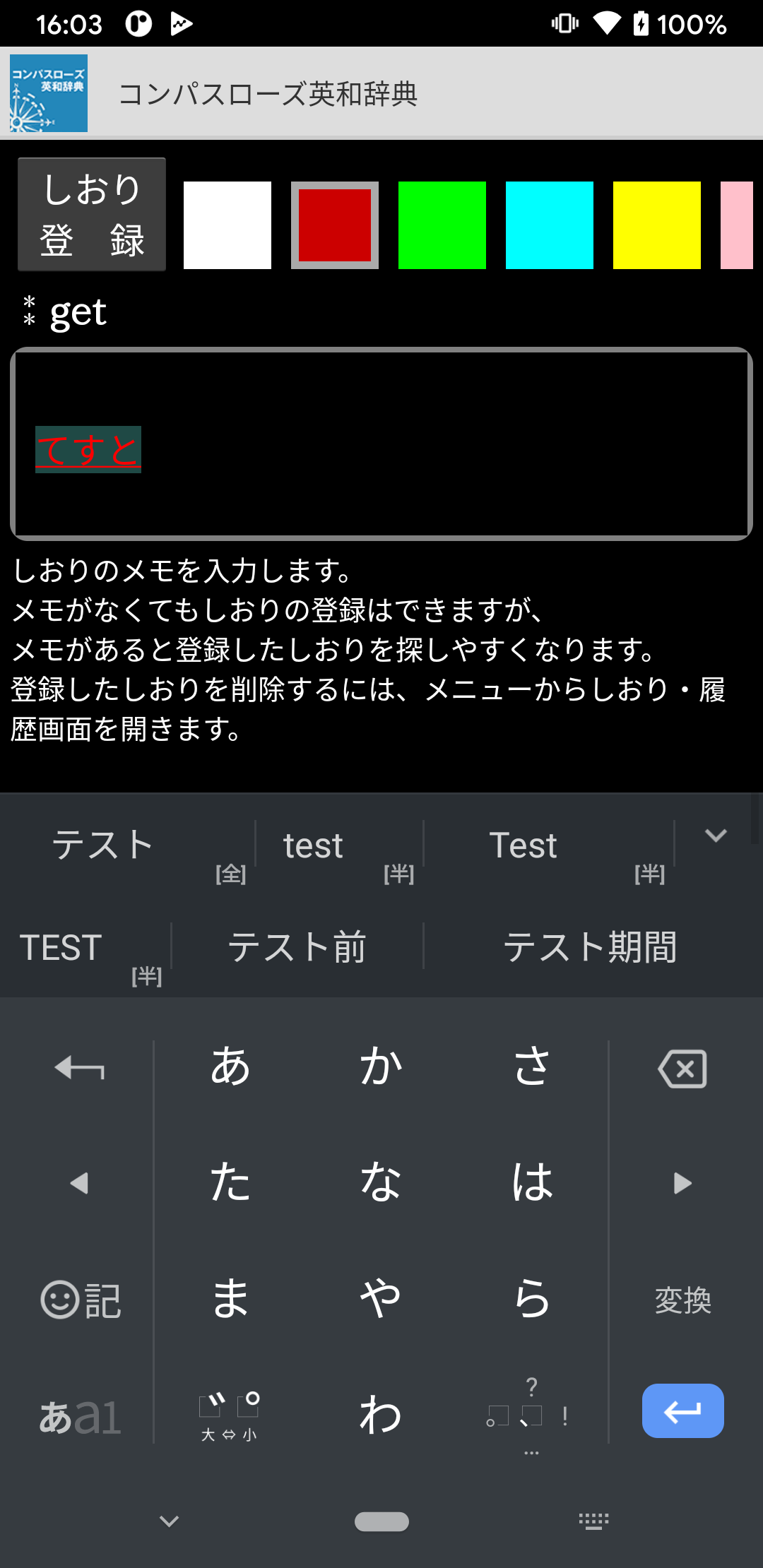 ・しおりには10色のパターン分けと、メモテキストを設定できます。