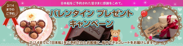 当キャンペーンは、本日から2月14日(月)までのキャンペーン期間中に、日本船(「飛鳥II」、「にっぽん丸」、「ぱしふぃっくびいなす」のいずれか)をご予約いただいたお客様全員に乗船時にチョコレートをプレゼントするというキャンペーンです。また、当社のリピーターのお客様には、更にAmazon電子ギフト券にて還元いたします。