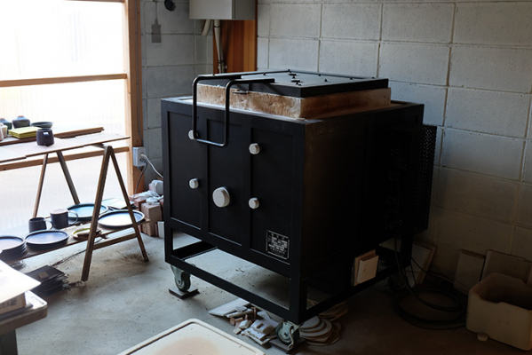 釉薬の出し方を調整しやすいこともあり、敢えて電気窯を使用。約10種類程の原料を調合し、表面に質感、結晶が生まれ、その色むらや濃淡が出るように工夫しているそうです。