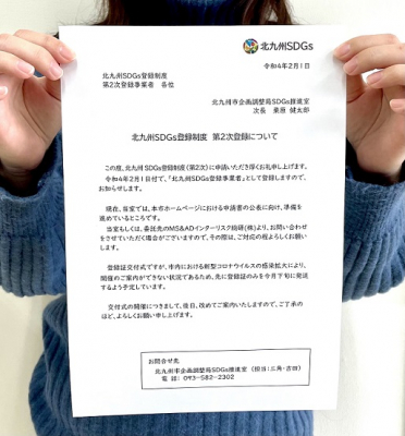 北九州市は「SDGs未来都市」に選定されている全国124自治体のうちの一つで、昨年より市独自の「北九州SDGs登録制度」をスタートしています。当営業所は第2期の登録事業者となります。