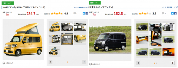 軽キャンパーはホンダN-VAN、N-BOX、スズキのエブリイベースが人気