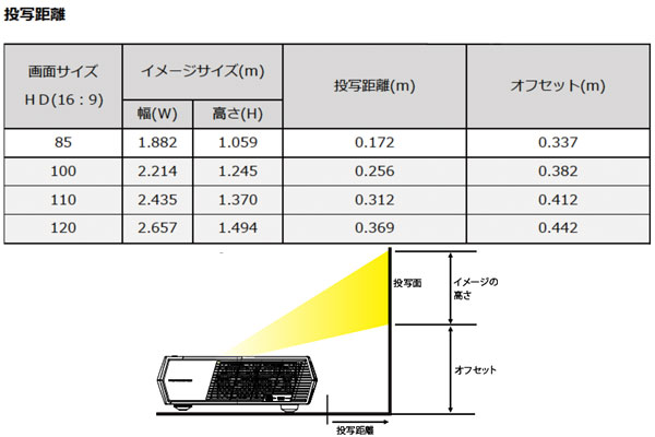 投写距離 :0.172m(85型)~0.369m(120型)※3