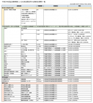当試験は中国の国家認証制度であるCMA(China Metrology Accreditation / 中国計量認証認可制度)を取得した試験機関で実施するもので、WWIPは日本企業の要望に応え、中国CMA認証試験機関への試験委託の代行業務を行います。