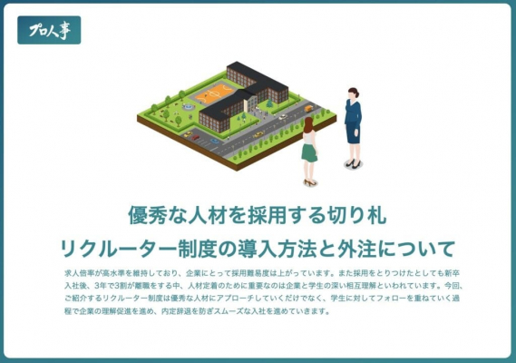 プレゼントさせて頂く内容は優秀な人材を採用する切り札【リクルーター】制度の導入方法と外注についてを書いたものです!