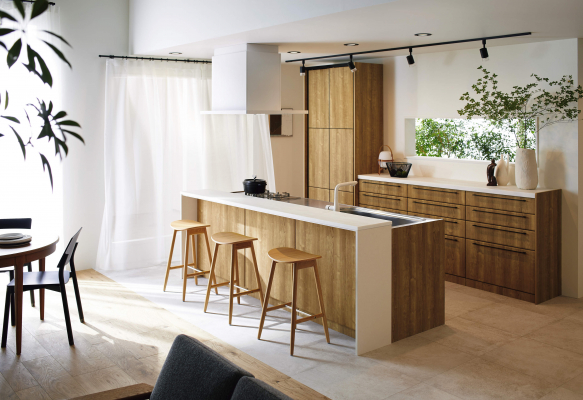 2018年のブランド刷新から初の大規模モデルチェンジとなる新「STEDIA」には、“がんばらない”で、快適な日々の暮らしをお手伝いする7つのアイテムを搭載。近年人気の対面キッチンのレイアウトでも、理想とする「開放感があり、かつ、空間をきれいに保つキッチン」を実現します。