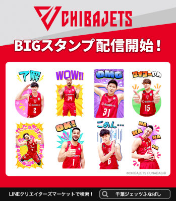 Bリーグ 2020-21シーズンで優勝を果たした千葉県船橋市をホームタウンとする男子プロバスケットボールチーム「千葉ジェッツふなばし」の「初」となるBIGスタンプが、株式会社インクルーズの販売アカウントより販売開始致しました。普段使いしやすいスタンプでトークが熱く盛り上がること間違いなし!好評発売中のLINE着せかえと合わせて「千葉ジェッツふなばし」を応援してみませんか?
