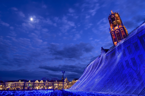 「永遠の愛情」「愛の告白」「思いやり」「まじめな愛」「博愛」「美しい瞳」等の花言葉を持つチューリップですが、オランダにはその起源として、心温まる有名な話が伝わります。本企画は、真実のチューリップ誕生秘話をベースに、有機EL照明を用いた世界初の「光るチューリップ」約5,000本を使用し、“光と音のショー”として展開するものです。