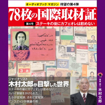 ゴマブックス株式会社(所在地:東京都目黒区、代表取締役社長:赤井仁)は、マガジン形式でのオーディオブックとして、木村太郎氏の『78枚の国際取材証 ジャーナリスト木村太郎が目撃した世界 第4号 ステーキの後にカフェオレは飲めない』がAmazon Audibleで、2月11日(金)よりAmazon Audibleで販売開始することを発表いたします。