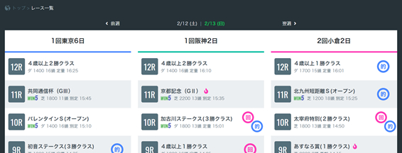 以前のレース一覧画面は、1レースから昇順で表示されていました。競馬のメインレースは1日の終盤に設定されることが多く、今回の改修でレース番号を降順で並び替えたことにより、メインレースを確認しやすい仕様になりました。