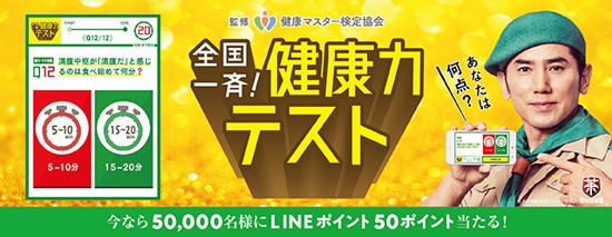 「健検(日本健康マスター検定)」主催の健康マスター検定協会(一般社団法人日本健康生活推進協会、理事長:大谷泰夫)は、2月14日から始まったサントリー「全国一斉!健康力テスト」の監修として参画、協力しています。これは、サントリーが展開している「自分防衛団」企画の一環として新たに展開する、健康に関する知識を問う問題に回答して、生活者の”健康力”をはかるテストです。