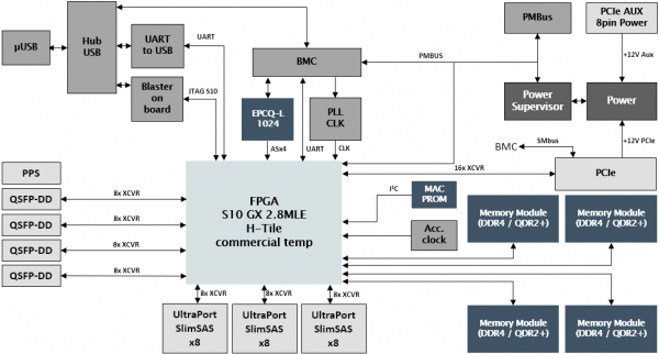 Stratix(R)10GXPCIeボードは、メモリ(オンボードおよび外部、DDR4またはQDRII +)、PCB、HDMI、CPU、JTAG、FPGA、PCIe、スイッチ、電源、高速トランシーバーを所有しており、Stratix 10GXフルハイトプロファイルボードは、市場のさまざまなサーバーやシャーシ、および組み込みアプリケーションのカスタムラックシステムに適合するように設計されています。