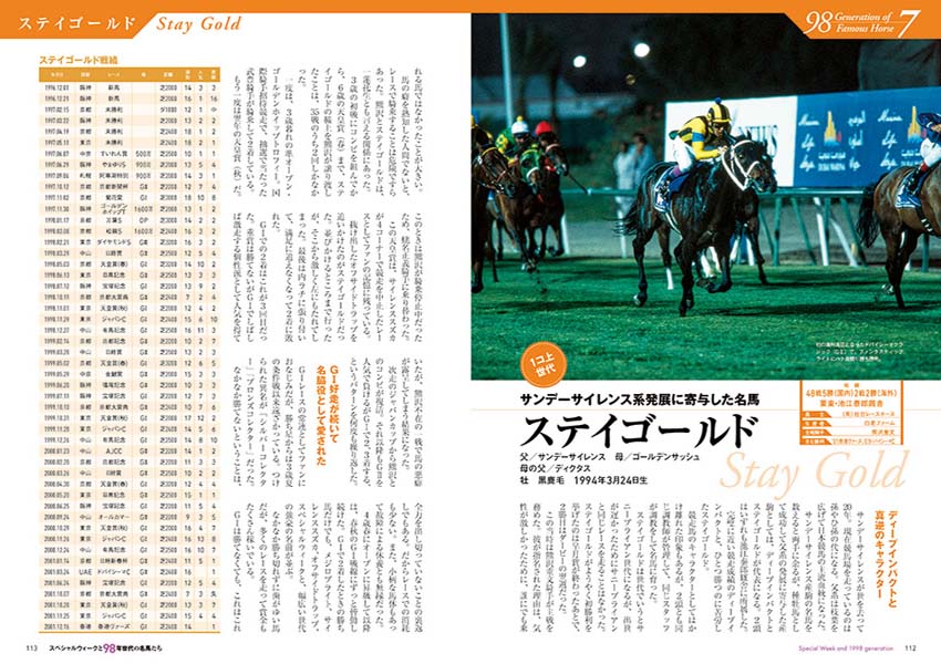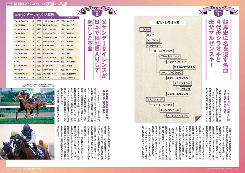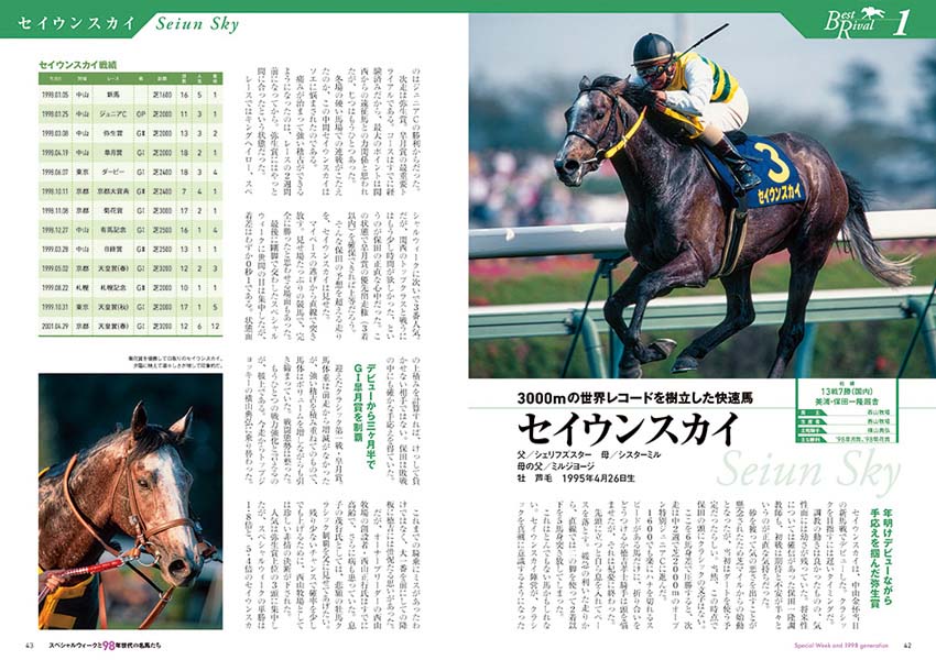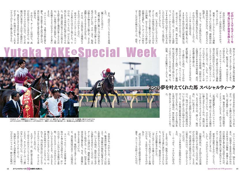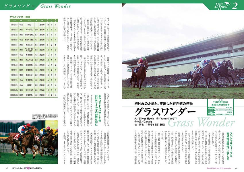 スペシャルウィークの全レースプレイバックはもちろん、写真満載のアルバムページや、関係者への取材など充実の内容となっています。
