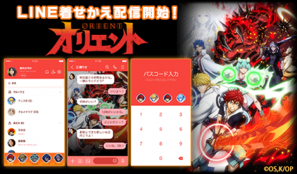 記念すべきLINE着せかえ第1弾は、メインにキービジュアルを使用しカラースキンは赤を基調とした目を惹くデザインとなっております。是非、LINEでも「オリエント」の世界観をお楽しみください!