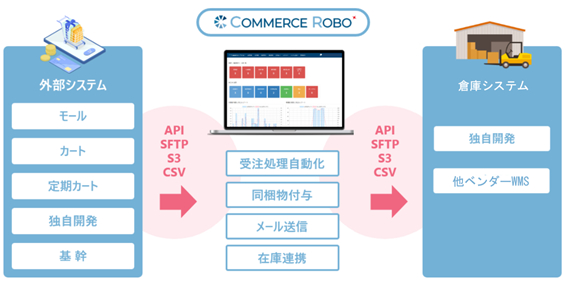 先行してプレリリースしたeコマース専用SCMロボットからOMS(受注)ロボットを単体で利用することができ、各種WMSとの連携が可能となりました。