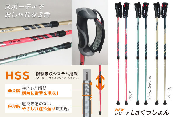 「手に優しい」クッション機能を搭載したウォーキングポール