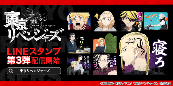 株式会社インクルーズ(東京都渋谷区、代表取締役社長 山﨑 健司)は、LINE株式会社(東京都新宿区、代表取締役社長 出澤 剛)が運営するコミュニケーションアプリ「LINE」内の公式スタンプショップにて、TVアニメ「東京リベンジャーズ」のLINE公式スタンプ第3弾となる「東京リベンジャーズ第3弾」を2022年2月16日(木)に配信を開始致しました。