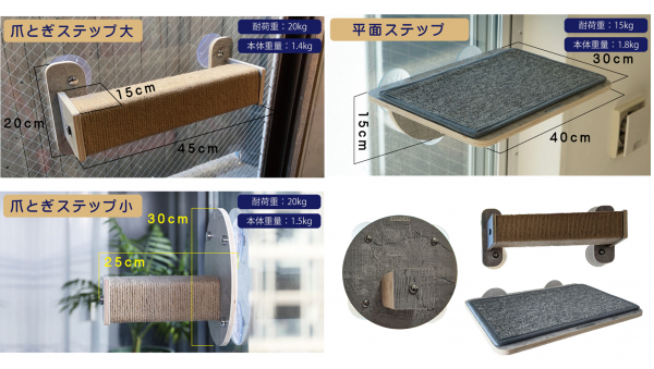 小型ステップは15kg、大型ステップは20kgの重さに耐えるように設計されています。
