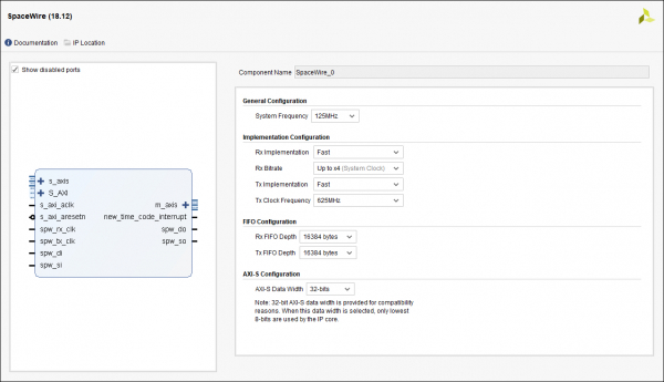 Space Wire IPは、新しいザイリンクスVivadoツールを利用してFPGAデザインにシームレスに統合されるように設計されています。 これにより、グラフィカルユーザーインターフェイスでIPコアを使用し、IPパラメーターを簡単に構成できます。