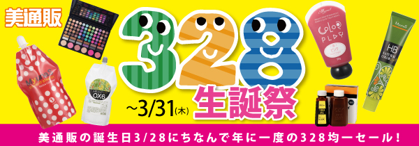 「美通販 生誕祭328 SALE!」は、美通販の開業記念日である3月28日を記念して、年に一度開催される特別なキャンペーンです。期間中は、日頃よりご愛顧いただいているサロン様への感謝の意を込めて、「328」の数字に関連付いた特別価格設定にて商品を販売いたします。材料費の節約・まとめ買いにも最適な「美通販 生誕328」キャンペーンは2022年3月31日(木)まで開催。