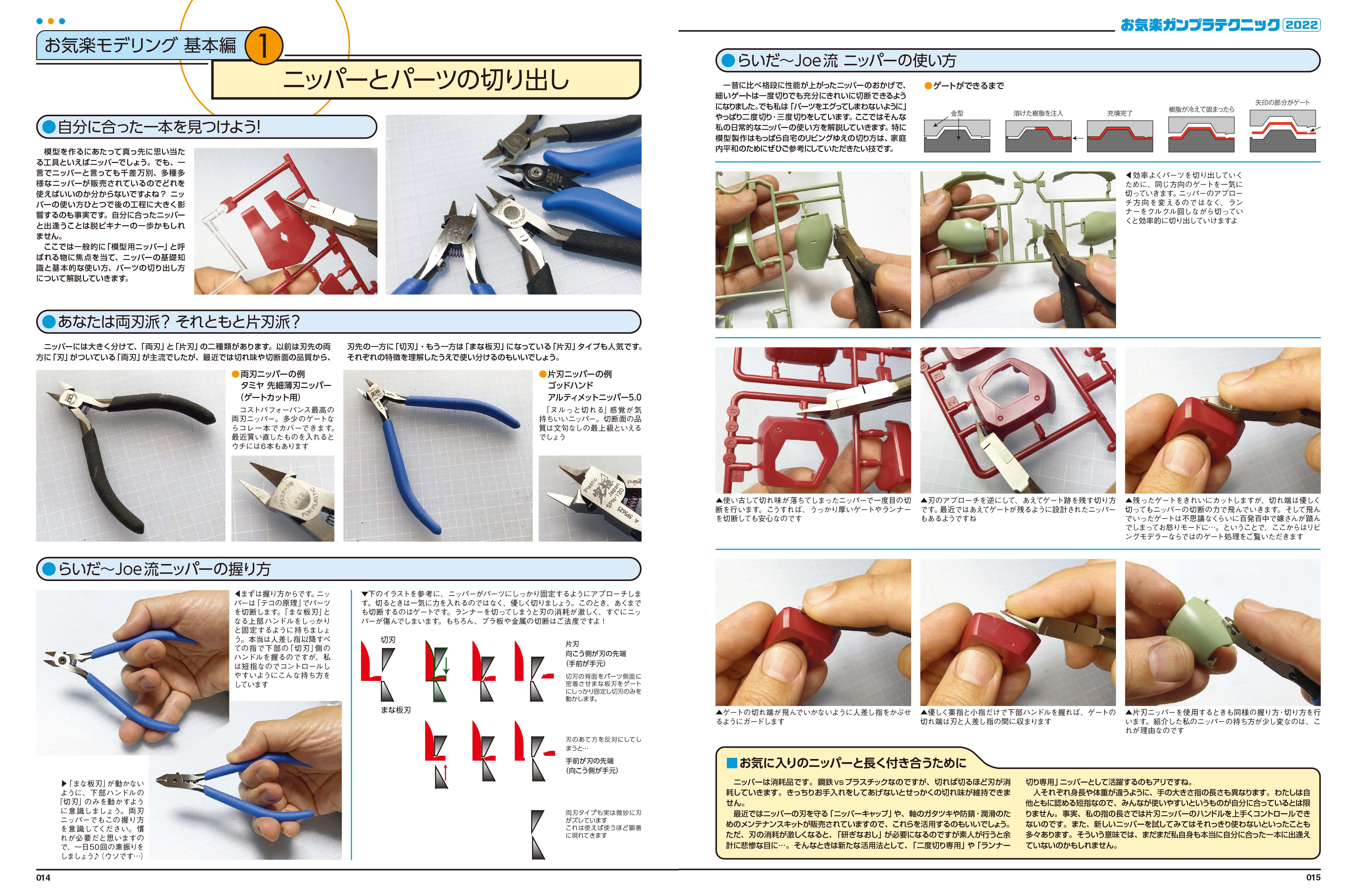 らいだ~Joe愛用のツールから、ガンプラ製作に役立つ基本テクニック、効果絶大のお気楽ウェザリングを全60ページで徹底解説!工具の選び方から塗装まで、お気楽に模型を楽しむために役立つ知識を新作作例とともにお届けいたします!