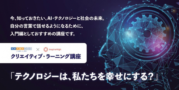 今回開催するクリエイティブ・ラーニング講座は、2021年8月に業務提携した「株式会社Inspire High(インスパイア・ハイ)」との共同開発講座。AIやテクノロジーを考えるための入門講座です。