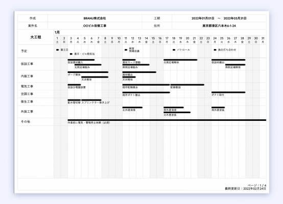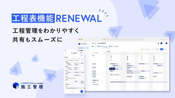 建設業界のDX(デジタルトランスフォーメーション)を目指すBRANU株式会社(本社:東京都港区 / 代表取締役CEO:名富達哉 / 以下ブラニュー)は、クラウド施工管理ツール「CAREECON for WORK 施工管理(https://work.careecon.jp/products/sekou) 」の工程表機能をリニューアル。2022年3月1日より提供を開始しました。