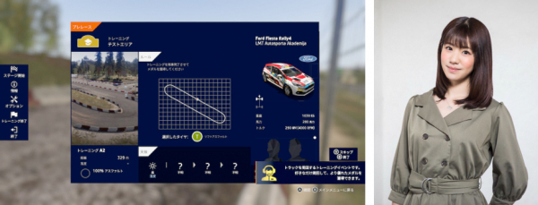 実際のラリーのチームに所属し、国内各地のラリー選手権に「コ・ドライバー」として参戦している、梅本まどかさんが、本作のキャリアモードのチュートリアルの日本語版吹き替え版を担当。初めて「ラリー」を体験するプレイヤーにもわかりやすく、コツを教えてくれます。