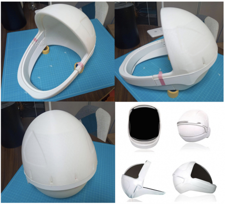宇宙服の胴体部分は既製品のライダースーツを改造して製作しています。また、現在制作中のヘルメット部分は、オンラインで公開されている3Dプリンター用データを利用して製作しており、既に頭を覆うベース部分が完成し、現在、顔を覆うシールド部分の製作を行っているところです。