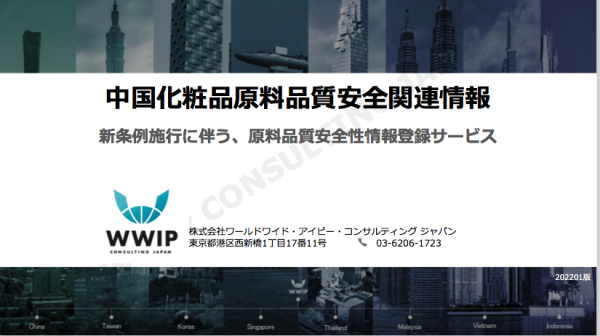 (3) WWIPは中国NMPA化粧品製品申請の豊富な実績があり(新条例下でもすでに50近い製品の登録登記、補充提出等の申請、申請準備を進めています)、製品申請時のNMPAとの原料に関する安全性要求のやりとりを通じて得た知見を持って原料登録を進めることができます。