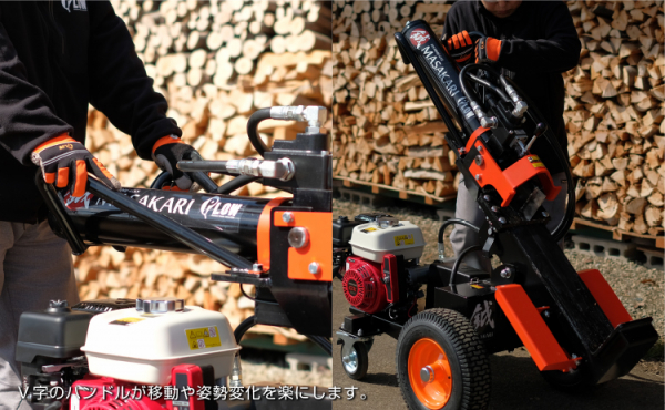 自社設計で薪割り機の心臓部のシリンダーは力強さを、コントロールレバーは軽い操作感を実現・両立しました。