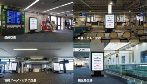 (上写真)各空港へ設置のデジタルサイネージ